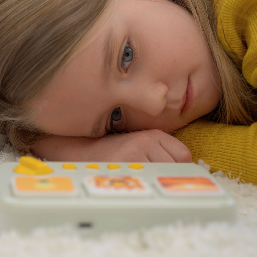 By mixing and matching story tile (characters, emotions, and objects) every creation becomes a one-of-a-kind audio adventure.